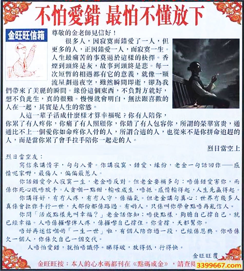 | 主题 :085期:金旺旺信箱彩民推荐→→《不怕愛錯 最怕不懂放下》 |