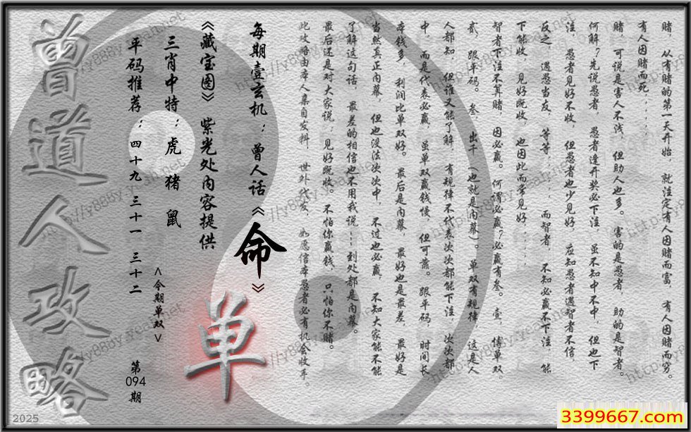 | 主题 :094期藏寶圖 新:莫把瑶池并曲江 老:独凭绣床方寸乱 禁:蛇 禁:4尾 |