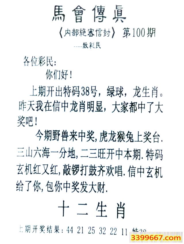 100期:首发推荐:≮馬會傳眞≯→(香港正版)