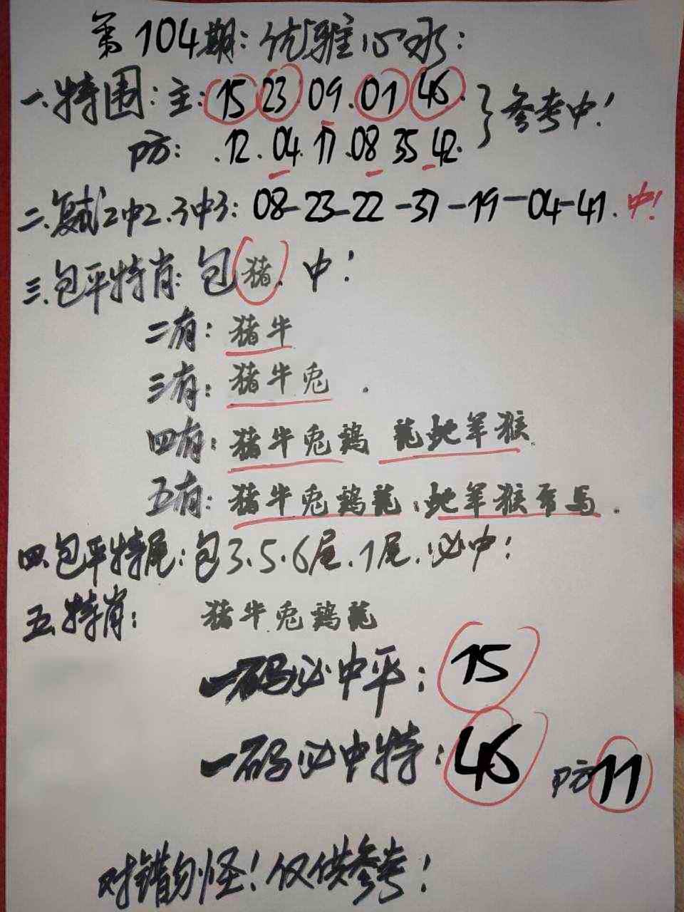 主题 :104期:优雅心水