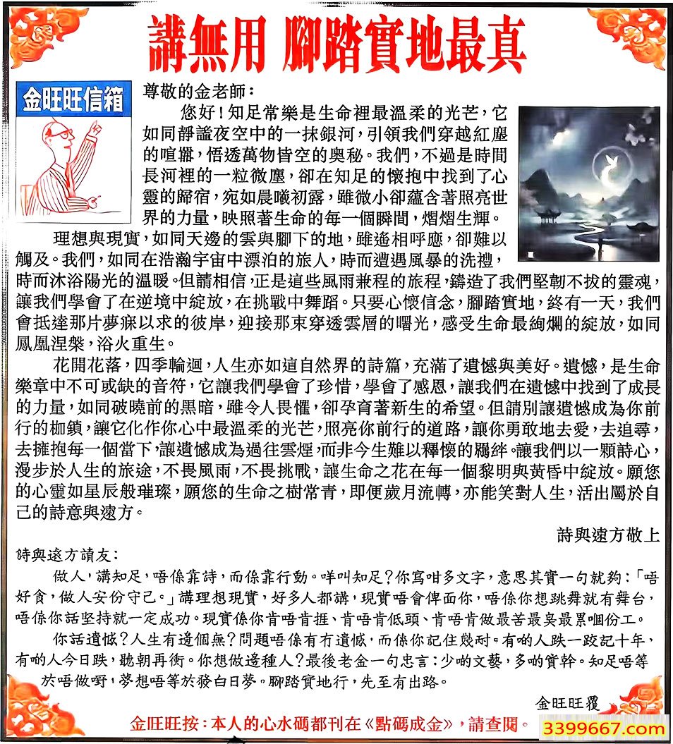 107期:金旺旺信箱彩民推荐→→《讲无用 脚踏实地最真》