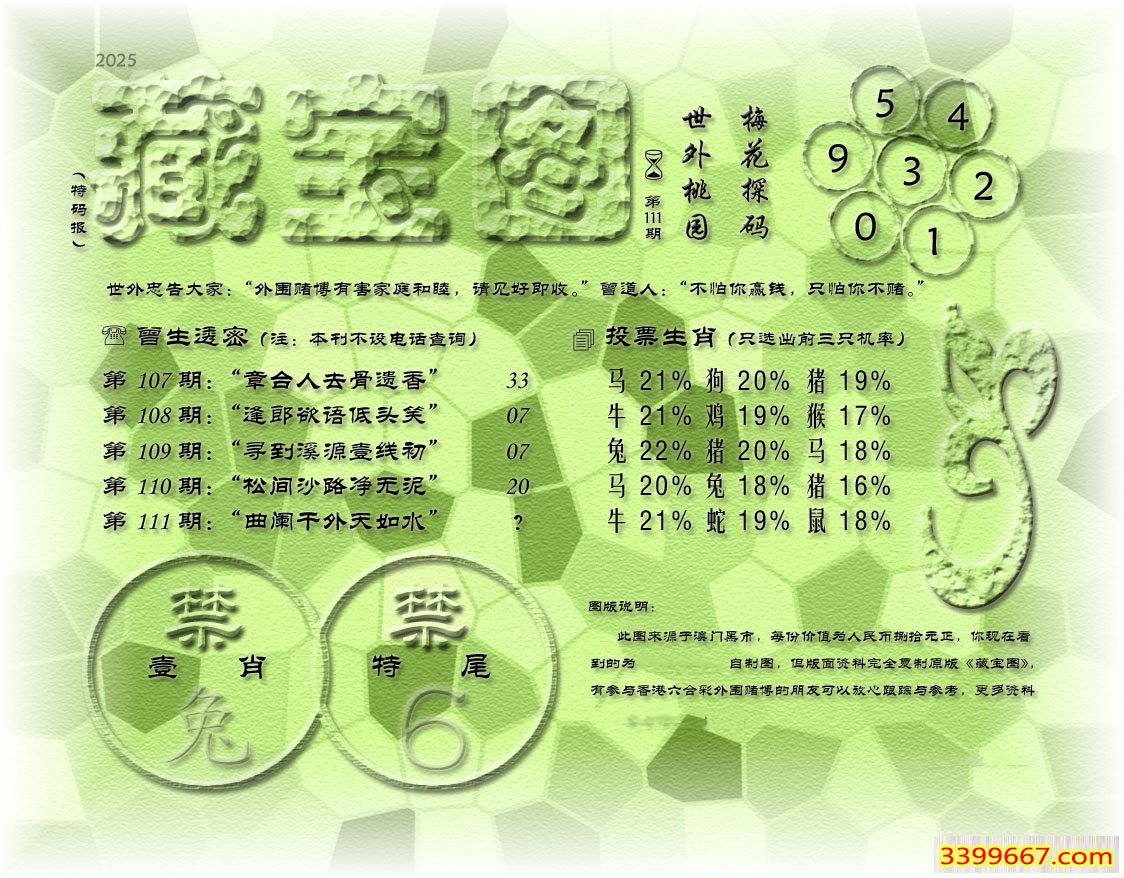 111期藏寶圖 新:始觉江山近故乡 老:曲阑干外天如水 禁:兔 禁:6尾