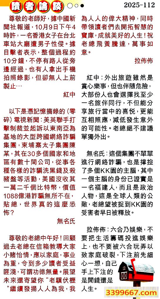 主题 :112期:彩民推荐〖貼信讀者論壇〗